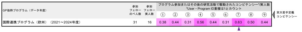 参加後の研究活動等を振り返り「効力があった」とフェローが自己評価した評価軸