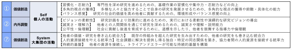 《 京都大学の若手研究者定義による自分の研究活動に必要なコンピテンシー》 評価軸 ① ② ⑦