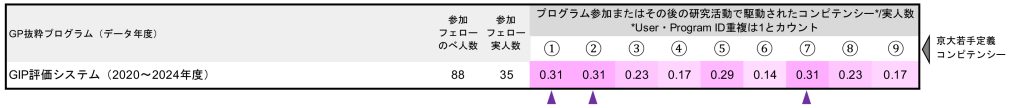 - 本評価システムから得られたコンピテンシーは、京都大学博士後期課程学生向けトランスファラブルスキル研修(JST次世代研究者挑戦的研究プログラムSPRING)において採用されている