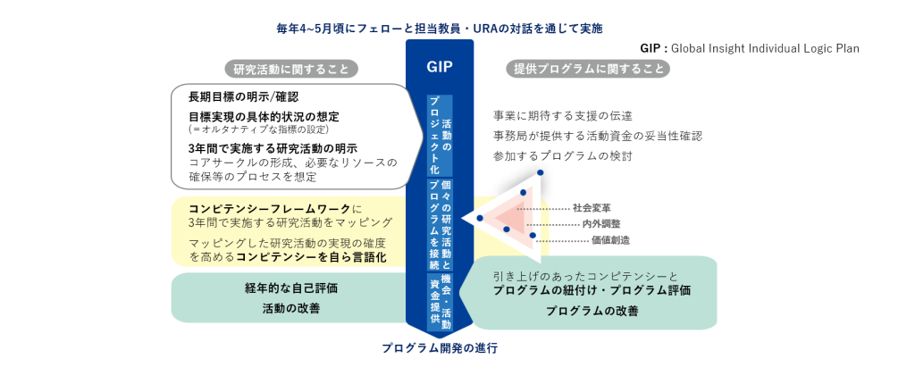 フェローが担当教員・URAとの対話を通じて自己評価を行うコンテンツである。