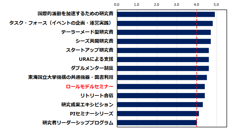 「他者の経験や活動から学ぶロールモデルセミナー」は、国際的に評価されているトップ研究者や卓越した功績を築いた企業経営者などを招いて経験談を聞き、若手研究者とのディスカッションを行う取組である。 経験談の聴講やディスカッションを通じて、若手研究者が自身のキャリアを振り返ると共に、将来の方向性や今後必要な取組を考えることを目的に実施する。