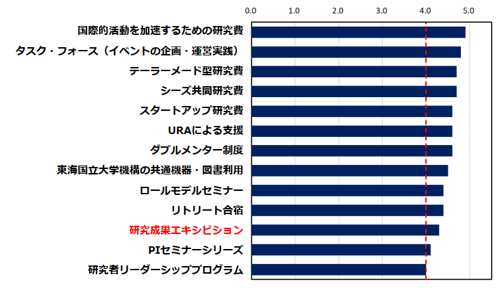研究成果エキシビジョンに参加した若手研究者からの満足度が非常に高い(4.3/5.0)。